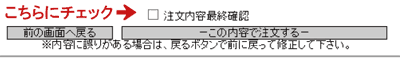 「ご注文内容確認」画面にてご注文内容をご確認お願いいたします。ご注文内容に間違いが無ければ、「ご注文内容最終確認」にチェックボタンをいれ、「この内容で注文する」ボタンをクリックしてください。